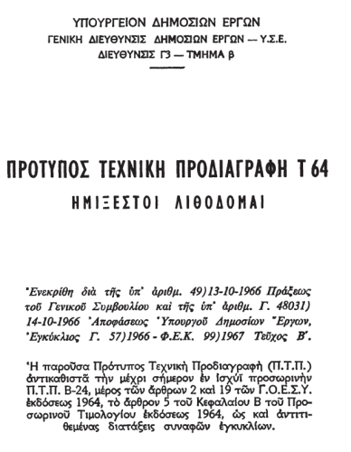 Η χρήση των Π.Τ.Π. απαιτεί ιδιαίτερη προσοχή καθόσον ισχύουν μόνο στο μέρος τους που δεν έχει βελτιωθεί με άρθρα της Τ.Σ.Υ. (Τεχνική Συγγραφή Υποχρεώσεων), της Ε.Σ.Υ. (Ειδική Συγγραφή Υποχρεώσεων) και άλλων Προδιαγραφών, που υπερισχύουν συμβατικά.