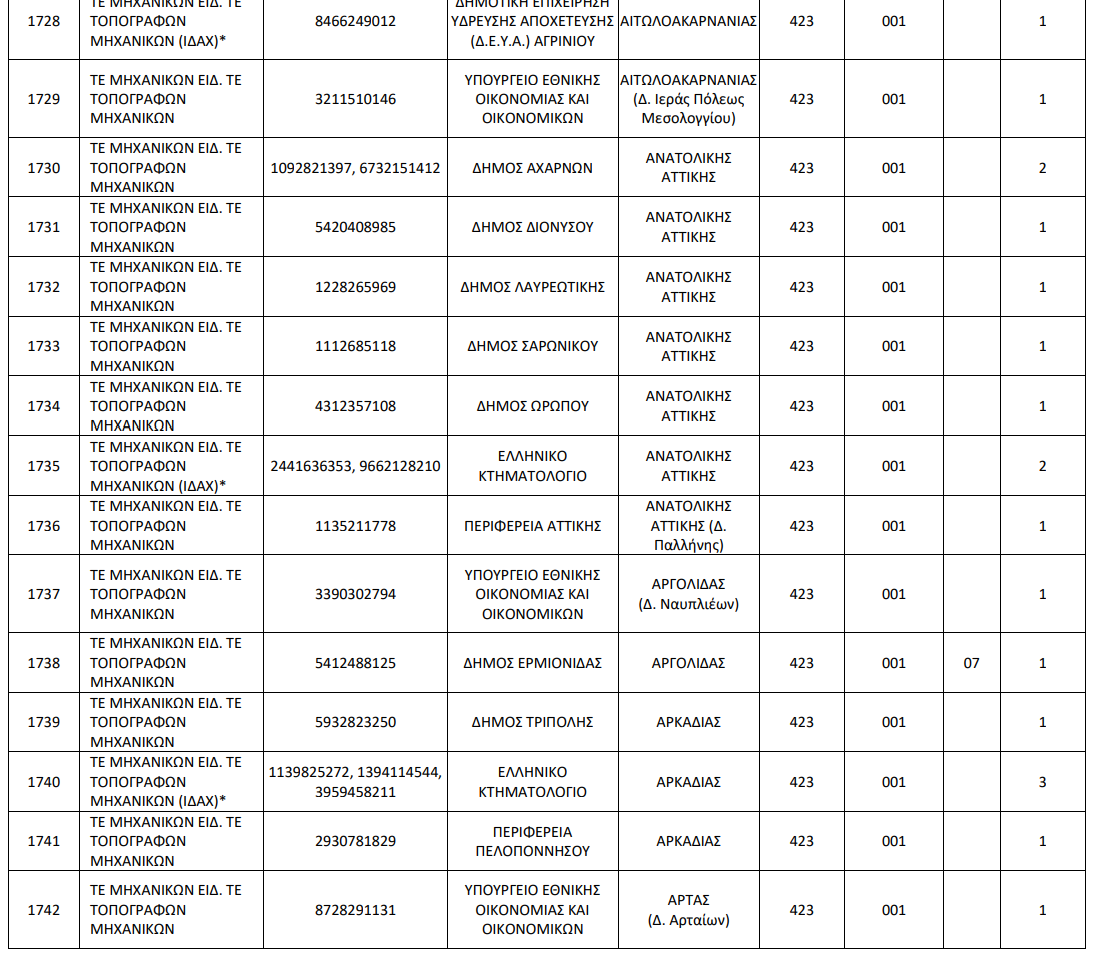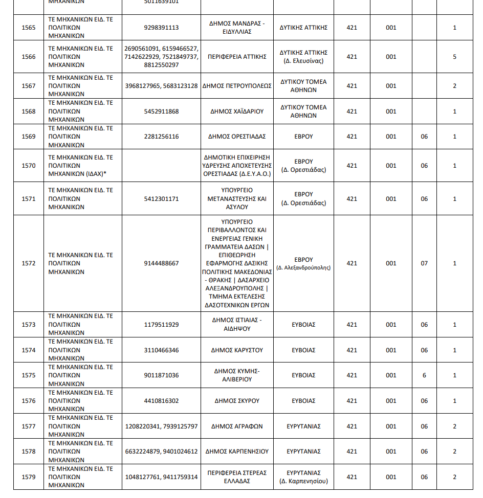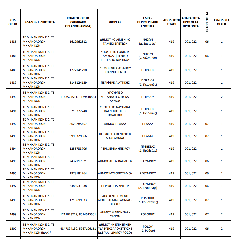 Αναλυτικά οι θέσεις ανά ειδικότητα και Υπηρεσία