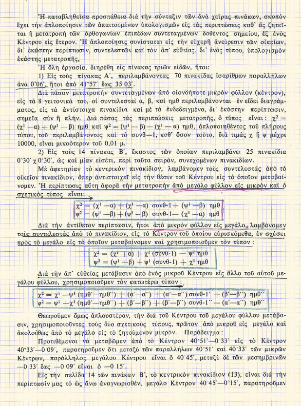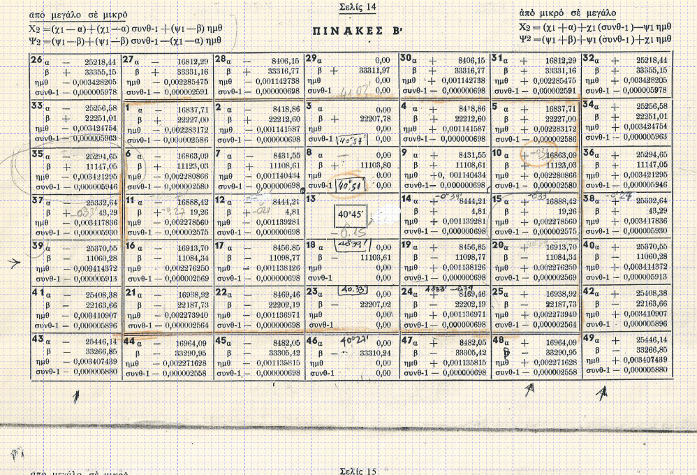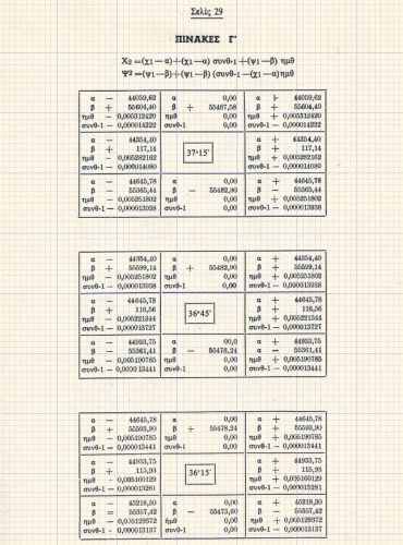 Πίνακες Μετατροπής Συντεταγμένων από μικρό φύλλο χάρτη σε γειτονικό φύλλο χάρτη.