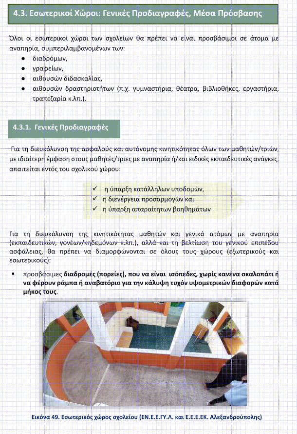 συνθηκών φυσικής προσβασιμότητας, στη βάση μάλιστα των απαιτήσεων της Σύμβασης για τα Δικαιώματα των Ατόμων με Αναπηρίες (άρθρο 9) (Χριστοφή, Μ. 2013).