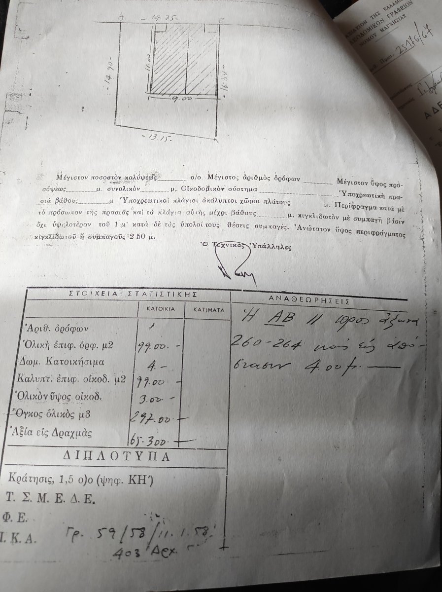 Με μία πρόχειρη ανάγνωση που κάνω εγώ το πρώτο μου συμπέρασμα είναι ότι τα συμβόλαια και τα τοπογραφικά που έχετε οι εμπλεκόμενοι έχουν μεγάλα λάθη. Με αποτέλεσμα και το ίδιο το Κτηματολόγιο να δείχνει το όπως εσύ δείχνεις ένα ενιαίο οικόπεδο το όλο (και έχεις βγάλει και οικοδομικές άδειες βάση αυτού) ενώ το κτηματολόγιο το δείχνει δύο Μάλλον εσείς είχατε κάνει και σύσταση καθέτων ιδιοκτησιών στο ενιαίο οικόπεδο, αυτό μάλλον ως τίτλο και ως τοπογραφικό δεν δείχνει να υπάρχει στις αναρτήσεις του κτηματολογίου. Ενδεχόμενα και τα άλλα κτίρια του Οικοπέδου και αυτών οι Οικοδομικές άδειες να δείχνουν ενιαίο οικόπεδο και έχτισε ο καθένας στην κάθετη Γενικά ένας γενικός αχταρμάς εδώ και περισσότερο από 60 χρόνια. Άποψη μου βήματα που πρέπει να κάνεις Βρίσκεις και αναθέτης σε έμπειρο Τοπογράφο Μηχανικό της περιοχής σου να αποτυπώσει υλοποιημένα όρια σήμερα οικοπέδου καθέτων ή ότι υπάρχει Επιπλέον, να σχεδιάσει τα περιγράμματα των ορίων σύμφωνα με τα συμβόλαια που υπάρχουν Ίσως και να σχεδιάσει τα περιγράμματα των ορίων όπως τα δείχνει το κάθε κτίριο στην τελευταία εν ισχύ οικοδομική του άδεια στο Τοπογραφικό της κάθε άδειας. Τα παραβάλει αυτά μεταξύ τους για να ξέρετε που είναι τα λάθη μεταξύ ορίων που δείχνουν οι τίτλοι και ορίων άδειων και τελικής πραγματικότητας. Λογικά με την γνώση αυτή και εφόσον υπάρχουν διαφορές θα πρέπει να αποφασίσετε όλοι μαζί να γίνουν οι διορθώσεις. Δηλαδή ένα τελικό Τοπογραφικό με τα τελικά όρια που θα τα αποδεχτούν όλοι και με βάση αυτό στον συμβολαιογράφο να φτιάξει νέα σύσταση καθέτου ή διόρθωση σύστασης αν υπάρχει (όπως καταλαβαίνεις το τι υπαρχει το φαντάζομαι μόνο, δεν μου το έχεις δώσει για να ξέρω) Ενημερωτικά για να γίνουν συμβολαιογραφικές πράξεις διορθώσεων ορίων των τίτλων το πιο πιθανό συμβολαιογραφικό θα απαιτηθούν ορισμένα να αφορούν και πράξεις μεταβίβασης. Αν ναι, θα απαιτηθεί για όλα τα ακίνητα (ή έστω όσα θα πρέπει να μεταβιβάσουν ή να κάνουν ανταλλαγές με όμορα κτίρια) να έχει συντάξει το καθένα την Ηλεκτρονική Ταυτότητα Κτιρίων. Για να συνταχθεί η ΗΤΚ για το καθένα ξεχωριστά θα πρέπει να είναι πολεοδομικά νόμιμα υφιστάμενο και αν έχει υπερβάσεις να ενταχθεί στον Ν 4495/17 για να κάνει τακτοποίηση. Με αυτά έτοιμα ο συμβολαιογράφος μπορεί να προχωρήσει. Σε περίπτωση που μπερδεύτηκες με όλα αυτά ενημέρωσε τον δικηγόρο σου να διαβάσει το κείμενο. Δεν γνωρίζω αν θα το δει σύντομα το θέμα αυτό κάποιος Τοπογράφος από την περιοχή σου. Θα ζητήσω από 2 ιδιαίτερα έμπειρους Τοπογράφους που ξέρω ότι είναι και εδώ να μας πουν την γνώμη τους. Ενημερωτικά όμως και οι 2 τους είναι απιθανο να σε αναλάβουν διότι είναι και σε άλλες περιοχές της Ελλάδας ο καθένας. Είμαι σίγουρος όμως ότι θα βρεις έμπειρο Τοπογράφο Μηχανικό. Το Τεχνικό Επιμελητήριο Βόλου είναι (απ’ όσο ξέρω) πολύ καλά οργανωμένο από παλιά. Καλά κουράγια…… αλλά είναι μονόδρομος ότι πρέπει να λυθούν τα άνω κάτω των τίτλων που έχετε